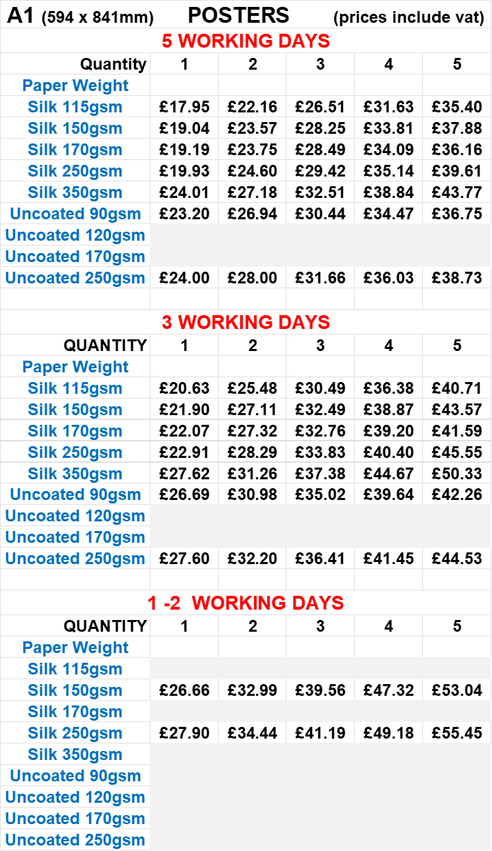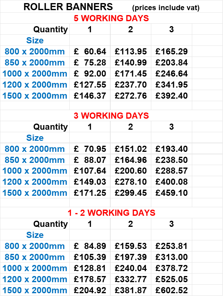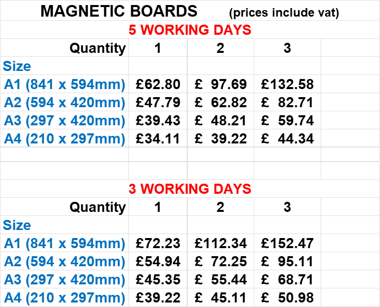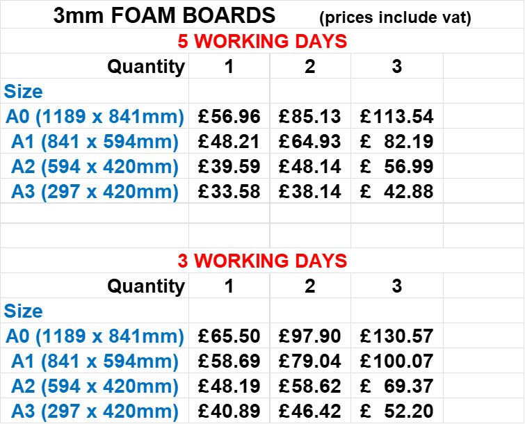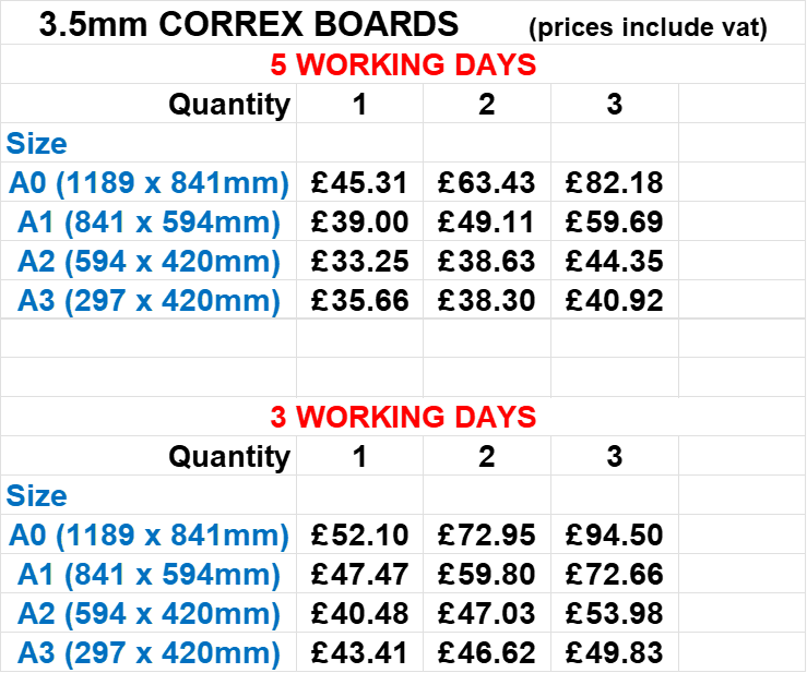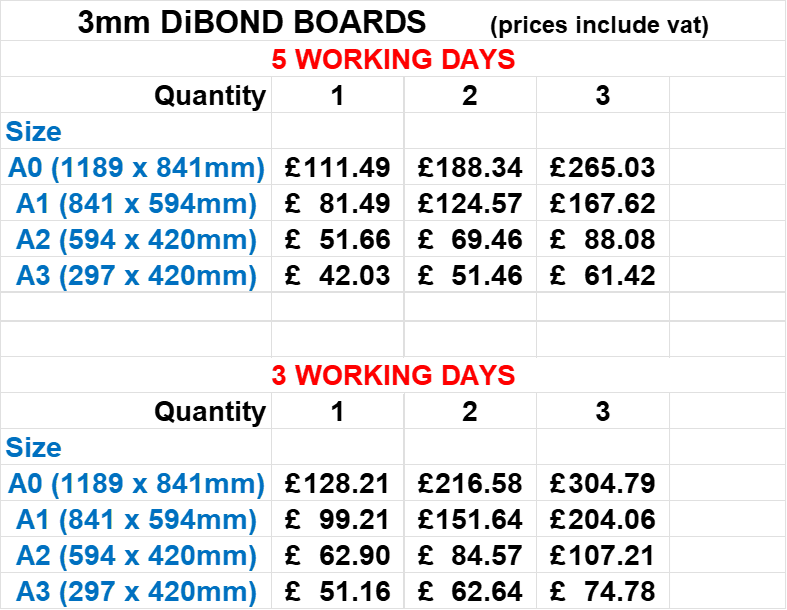 Rigid Sign Prices (Foam / Correx / DiBond)